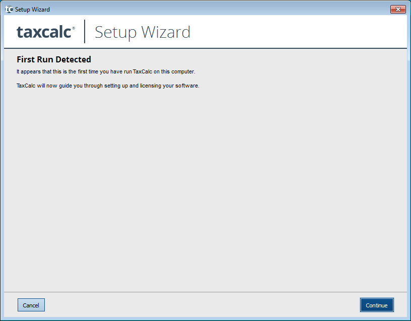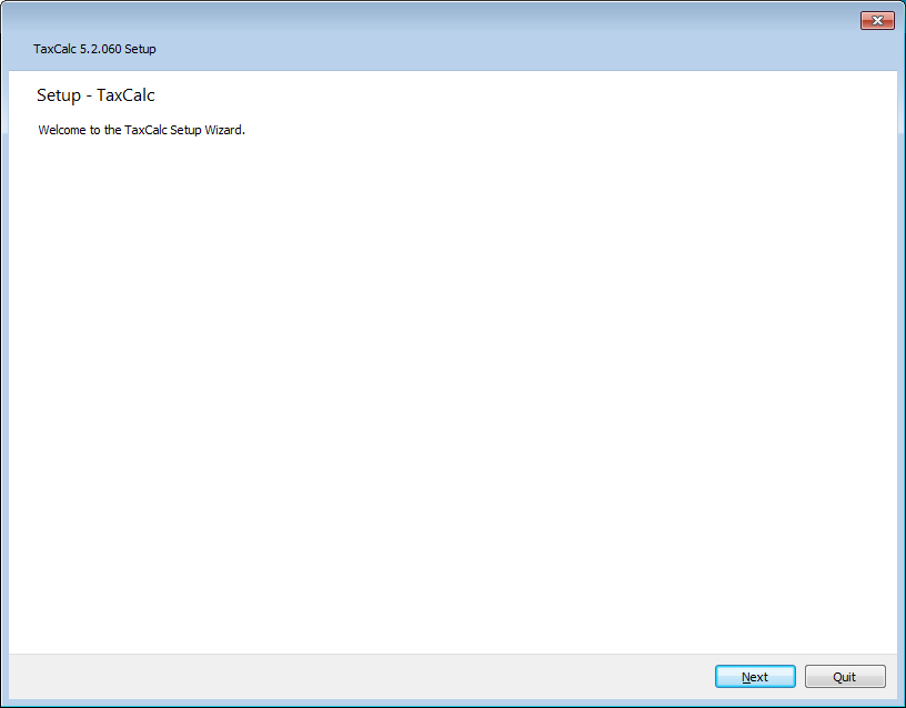 Click Run to continue. You are now shown the introduction to the TaxCalc Setup Wizard.