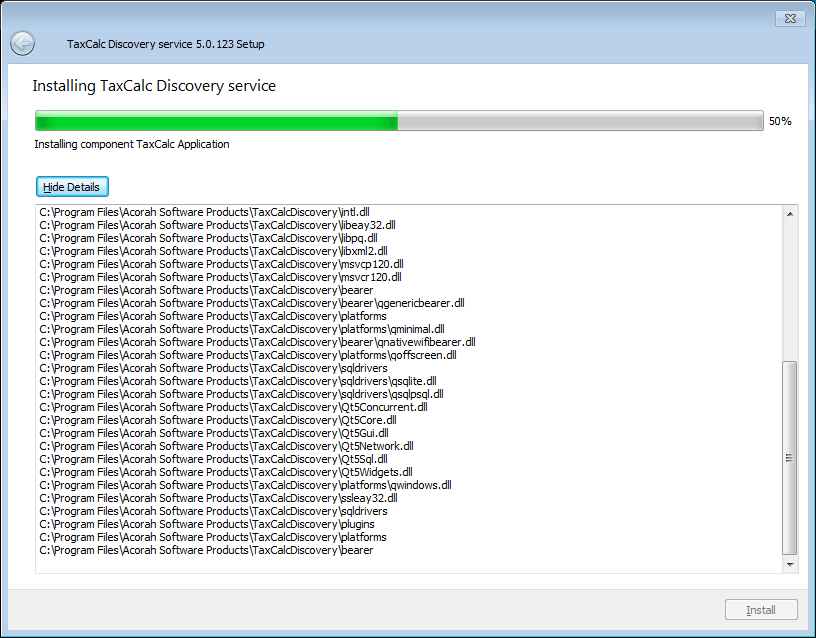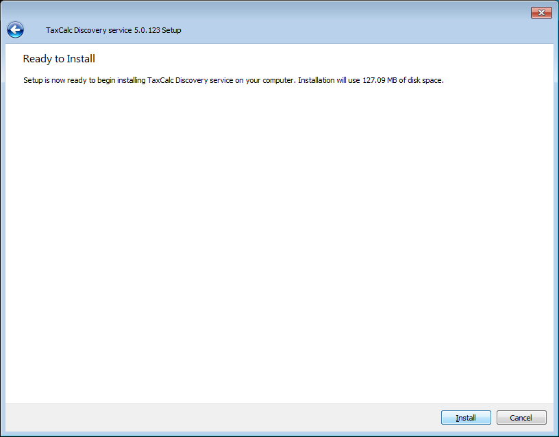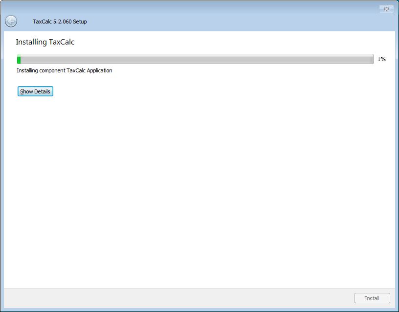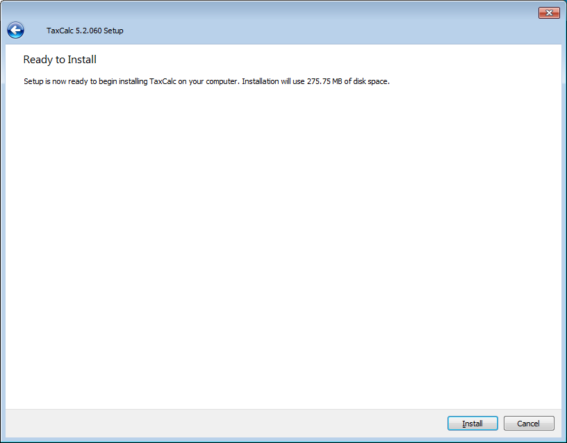 When the next screen is shown, you are ready to begin the installation of the TaxCalc software. Click Install to continue.