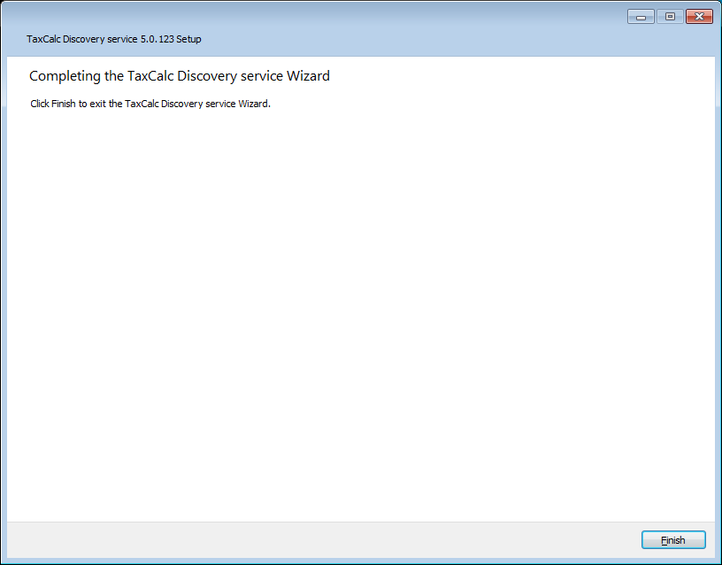 Click Finish to complete the initial setup. STEP 3: Configure the primary machine to act as the serverAs TaxCalc starts, it will search for hub databases. As there are no current databases, it should present you with the First Run Detected screen.