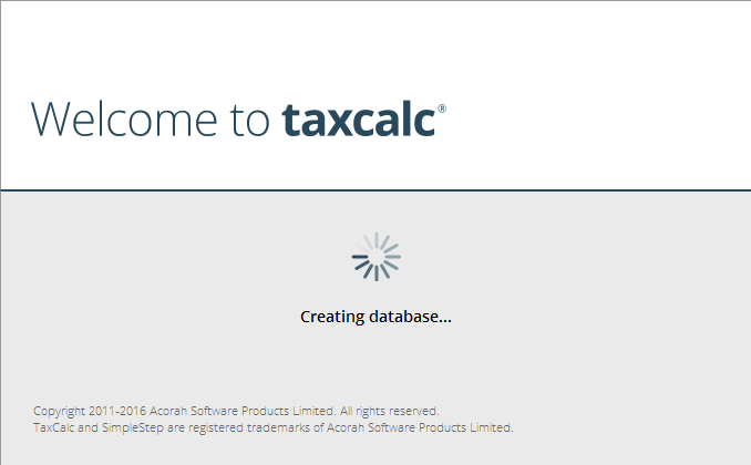Click Finish on both of the final setup screens. TaxCalc will then begin to create the database.
