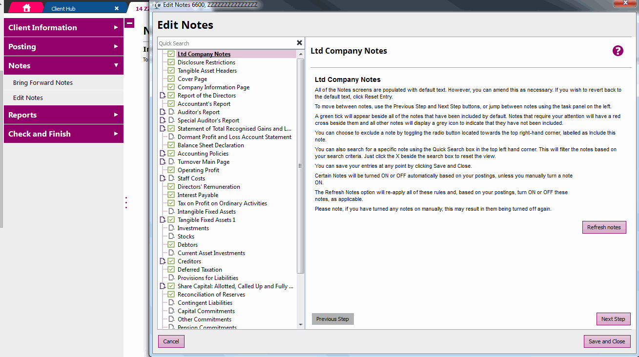 You can create previous years accounts to be able to have comparatives. Make sure that the dates follow each other. How to change notes globally across all clients