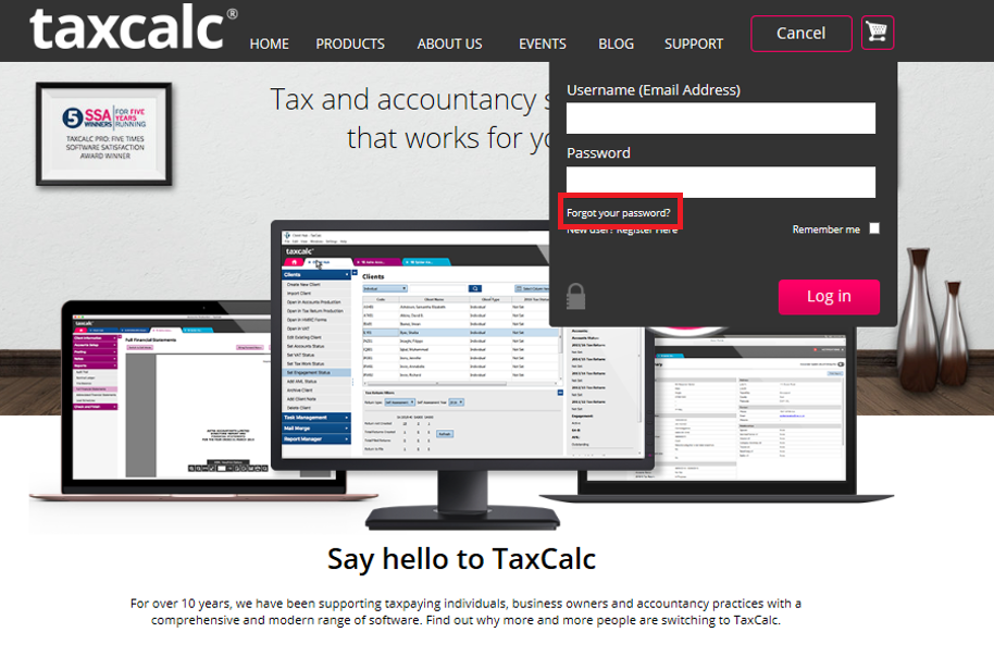 If the password you are using to access the TaxCalc website does not allow you to log, in it will need to be reset.