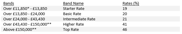 This article looks at the Scottish rates of income tax for the 2018/19 tax year. For information regarding 2016/17 and 2017/18 and how to change the rate being applied to the tax calculation please click here Scottish tax bands and rates Although there was a small change between the UK and Scottish tax bands in 2017/18, it is 2018/19 that sees some significant changes. There are now five tax bands and five tax rates for Scottish non-savings income as follows: UK tax bands and rates The UK basic rate band has increased for 2018/19 but remain as three tax bands and rates as follows: *Assumes person is in receipt of the Standard UK Personal Allowance **Personal Allowance is reduced by £1 for every £2 earned over £100,000. How does this affect a tax calculation? As in 2017/18, only non-savings income will be subject to the Scottish rate bands and tax; savings and dividend income will still be subject to UK rates as in previous years so, when calculating the liability to income tax, consideration needs to be given to both UK and Scottish rates where there is savings and/or dividends and non-savings income. The following example shows how the tax rates and bands interact with each other: As seen in the above example, £1,070 of non-savings income is being taxed at the higher rate as only £31,580 is taxable at the lower rates of Scottish tax (£43,430 minus £11,850). Some of the savings income is being taxed at the basic rate of UK tax as there is still £1,850 left of the UK basic rate band (£34,500 - £32,650). The first £500 of this amount has been used by the personal savings allowance which leaves £1,350 to be taxed at the UK basic rate. The WhatIf Planner is now available for 2018/19 which incorporates the changes to all of the UK and Scottish tax bands and rates for the year (requires additional licence).