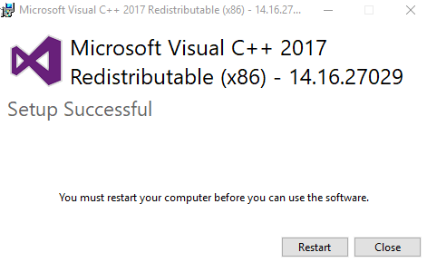 4 - After setup is complete, you may be prompted to 'Restart' your machine, if so, save and close any work you have open, then click 'Restart':
